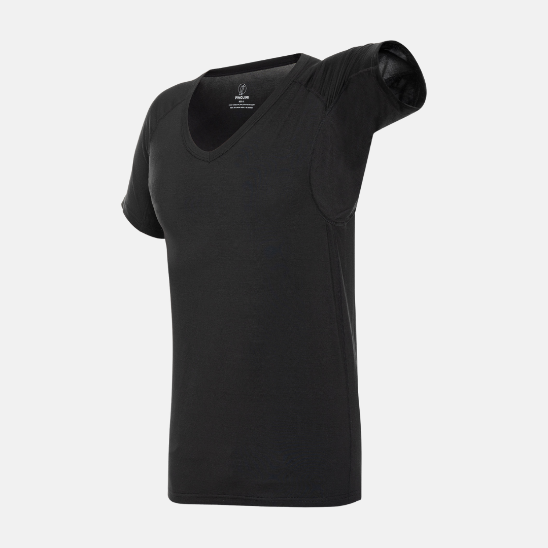 De speciale pads in de oksels hebben een absorberende en ademende werking. Hierdoor komt zweet niet bij je bovenkleding en blijft het 100% droog.